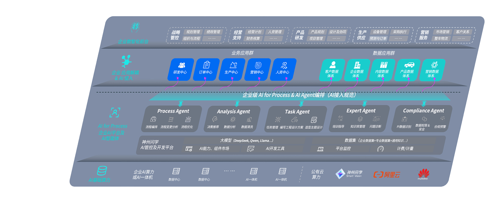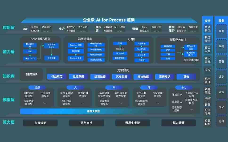 端到端的一站式AI工作空间深度融合了从企业战略规划到日常经营的全流程业务板块,,,,定向解决车企内部领域多、、、部门多、、、链条长、、场景碎片化等难题,,,支持车企快速构建以AI为核心的生产力写作体系,,,,实现任务执行与AI能力的无缝集成与交互